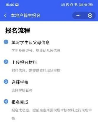 第三步:选择报名类型未报名的学生/家长按条件选择本地户籍报名或积分入学报名;已报名的学生/家长可进入“我的报名”查看已报名信息及确认入读。