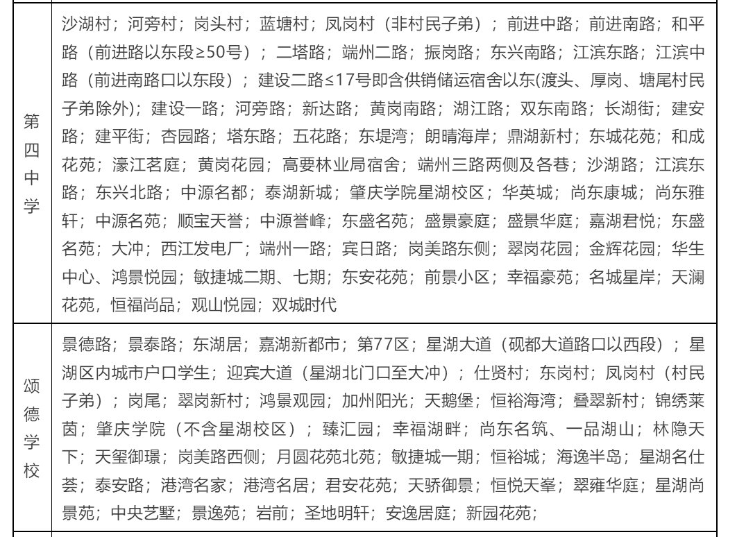 (1)无地段学校指肇庆中学,肇庆一中、肇庆一中实验学校