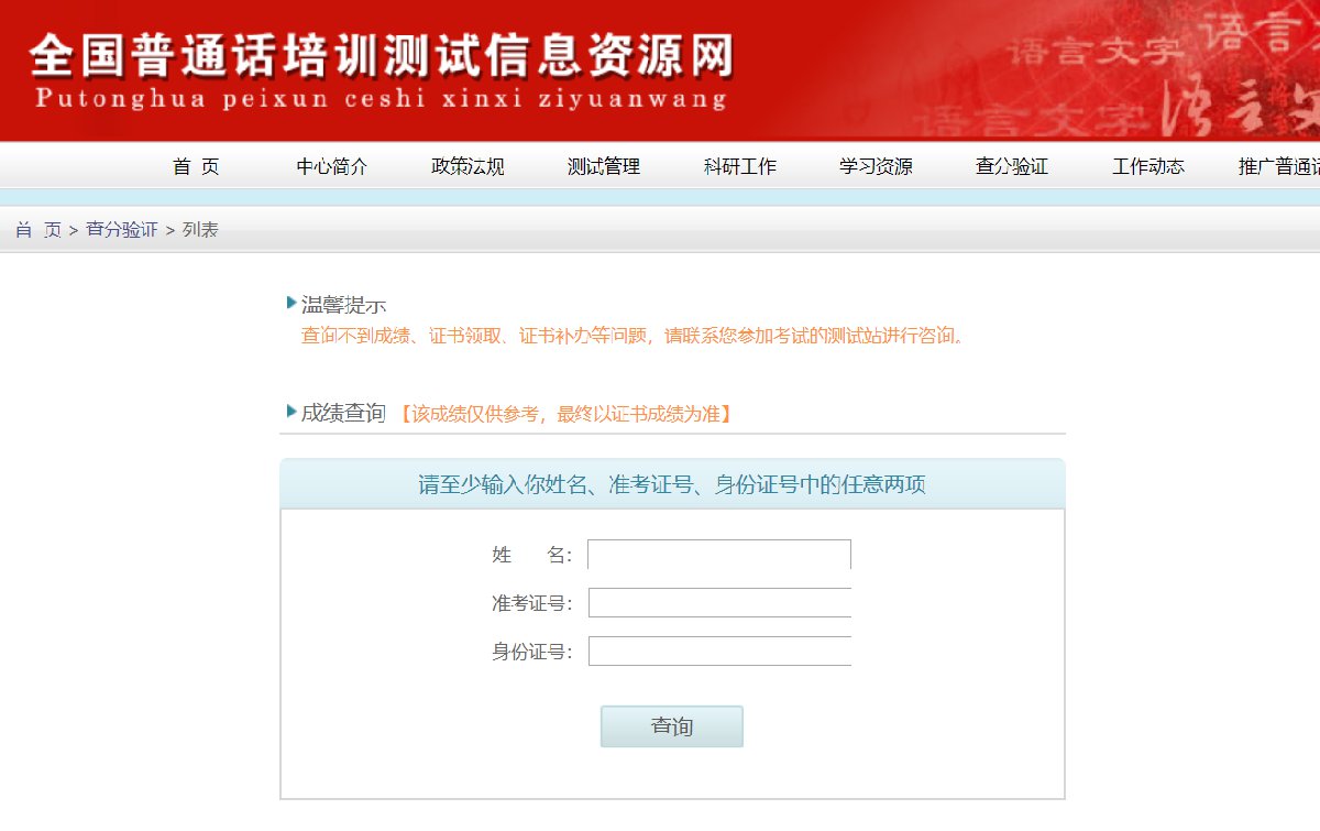 普通话考试成绩查询入口:点击进入