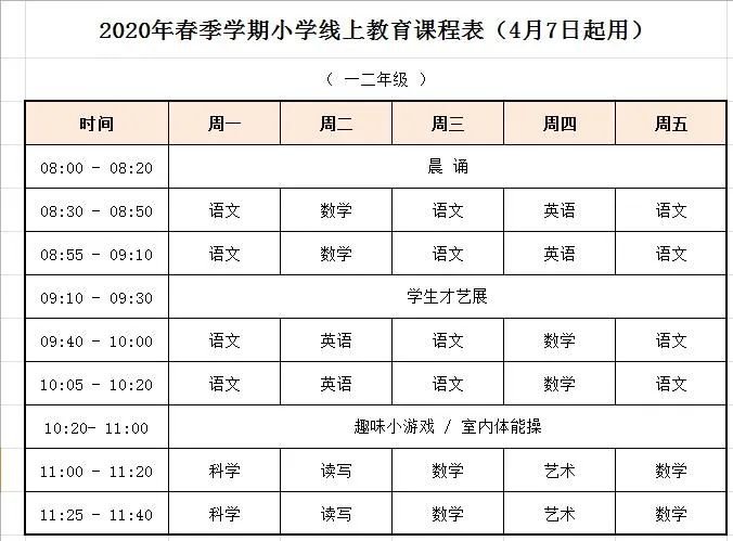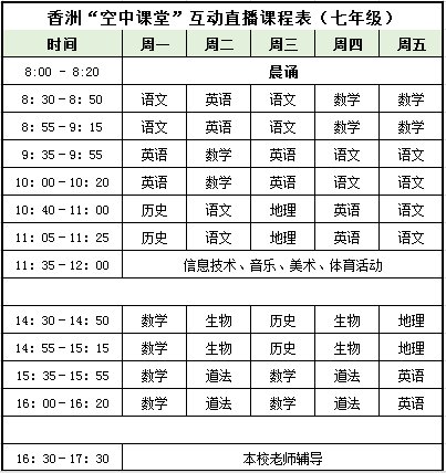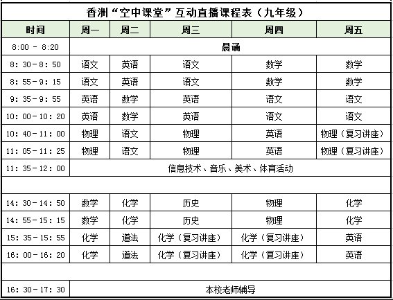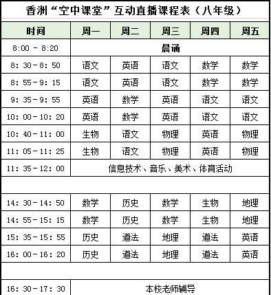珠海香洲区”空中课堂”最新课程表 广东空中课堂