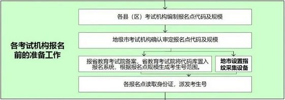 四个环节,考生信息注册,各考试机构报名前的准备工作,考生预报名,确认报名资格。