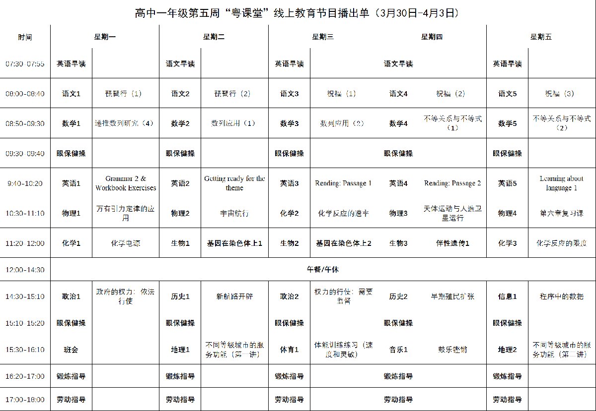 茂名粤课堂3月30日高三课程表(广东高三课程表)