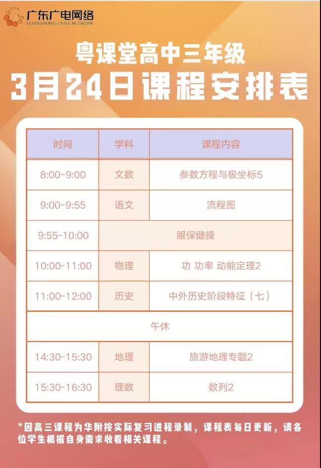 茂名粤课堂3月24日高三课程表(茂名网络大课堂)
