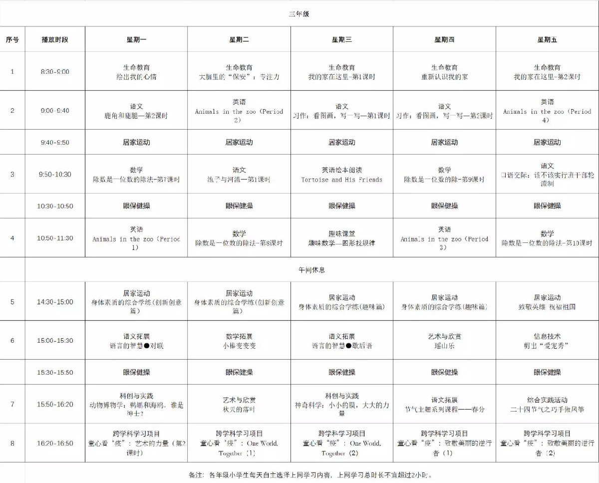 茂名粤课堂小学三年级课程表(广东粤课堂小学上课时间表)