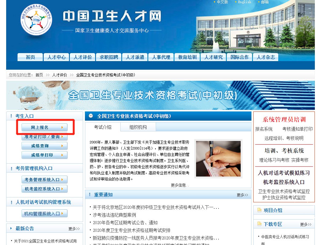 回答:在中国卫生人才网报名。(网址:https://www.21wecan.com/)