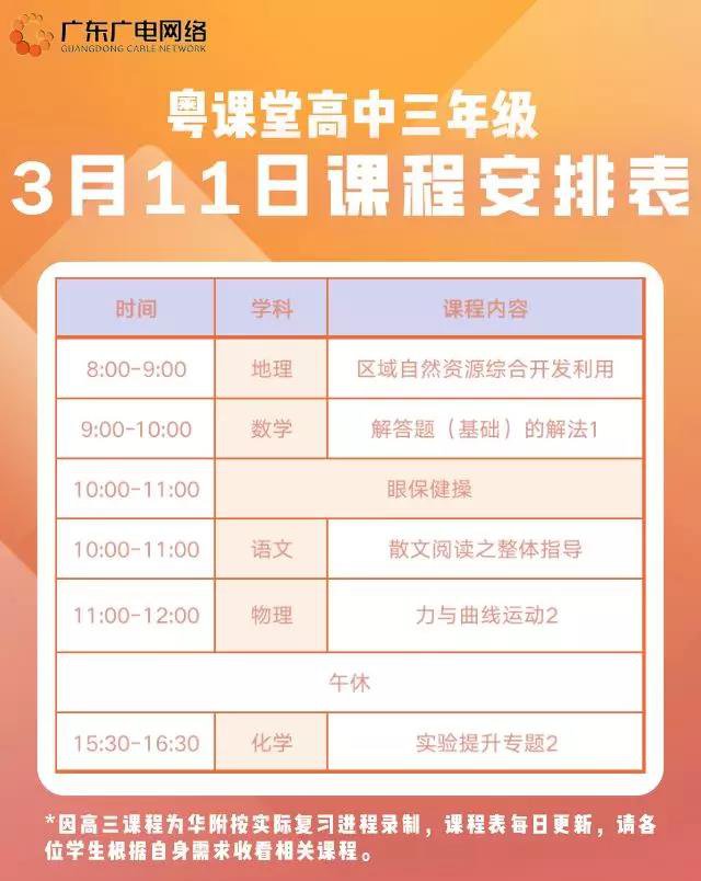 茂名粤课堂3月12日高三课程表(茂名云课堂)