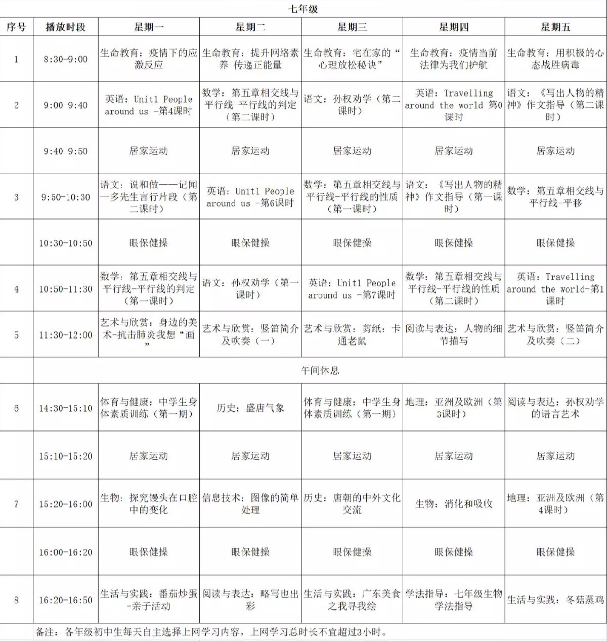 茂名粤课堂初三课程表 广东初中课程表时间安排