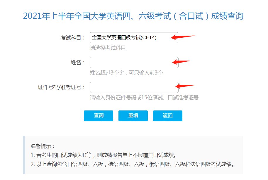 2.输入姓名和证件号码/准考证号,点击查询按钮进行查询。