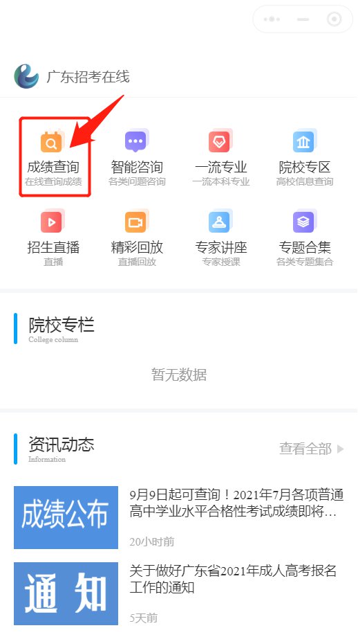 2021广东7月高中学考成绩查询流程(广东招考在线小程序)