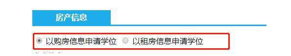 3、【房产信息】【房产信息】分为“以购房信息申请学位”和“以租房信息申请学位”两种情况,用户根据自身实际情况,选择填写其中一种即可。
