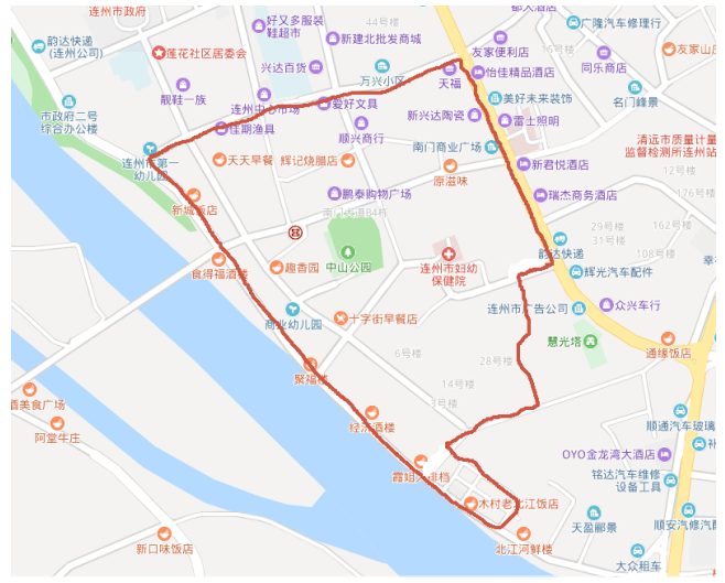 连州镇中心小学(原连州镇城北小学)一年级招生部分范围示意图。