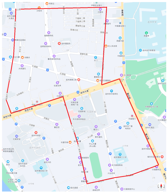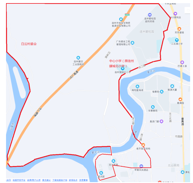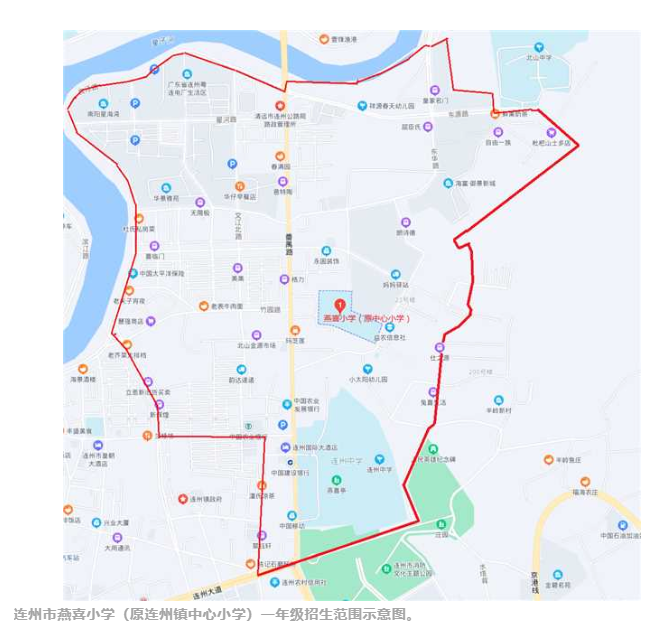 连州镇中心小学(原连州镇城北小学)一年级招生部分范围示意图。