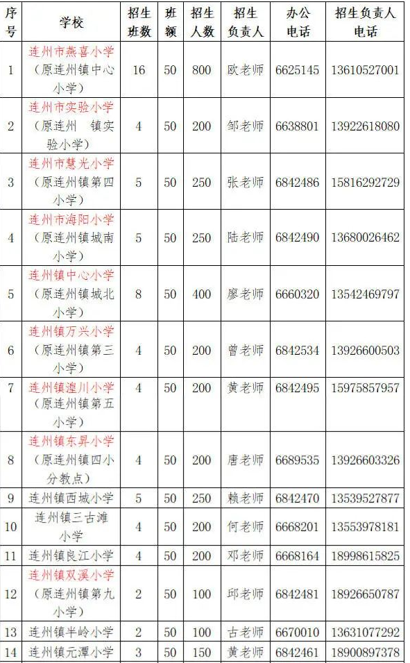 连州市区小学2022年一年级新生招生方案