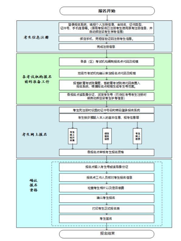 采用网上注册+网上报名+报名点现场确认的方式进行报名。报名流程如下: