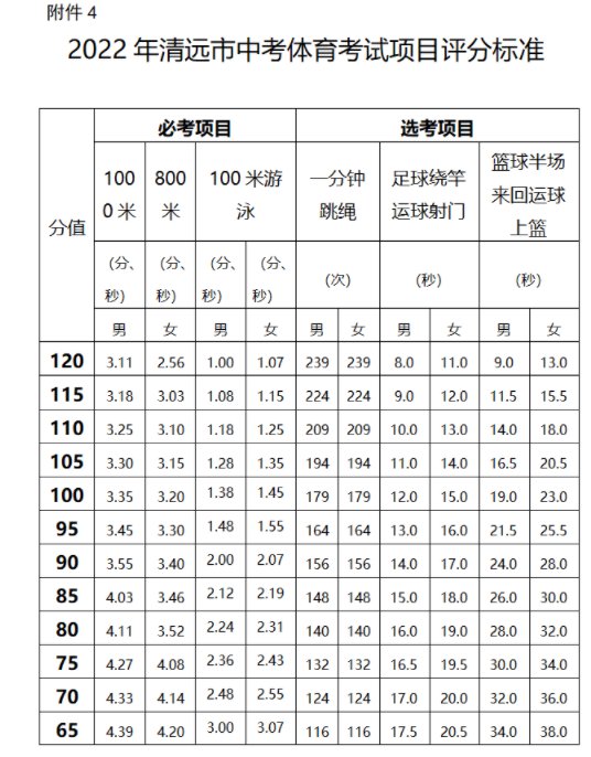 2022清远市中考体育考试项目评分标准(2021清远中考体育考试项目标准)