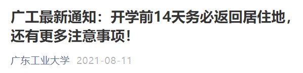 2021广东工业大学秋季返校通知(广东工业大学2021新生开学)
