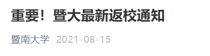 暨南大学2021年秋季学期学生返校温馨提示