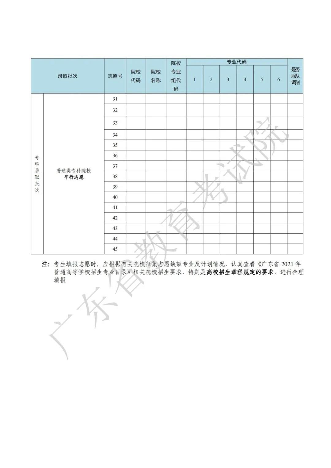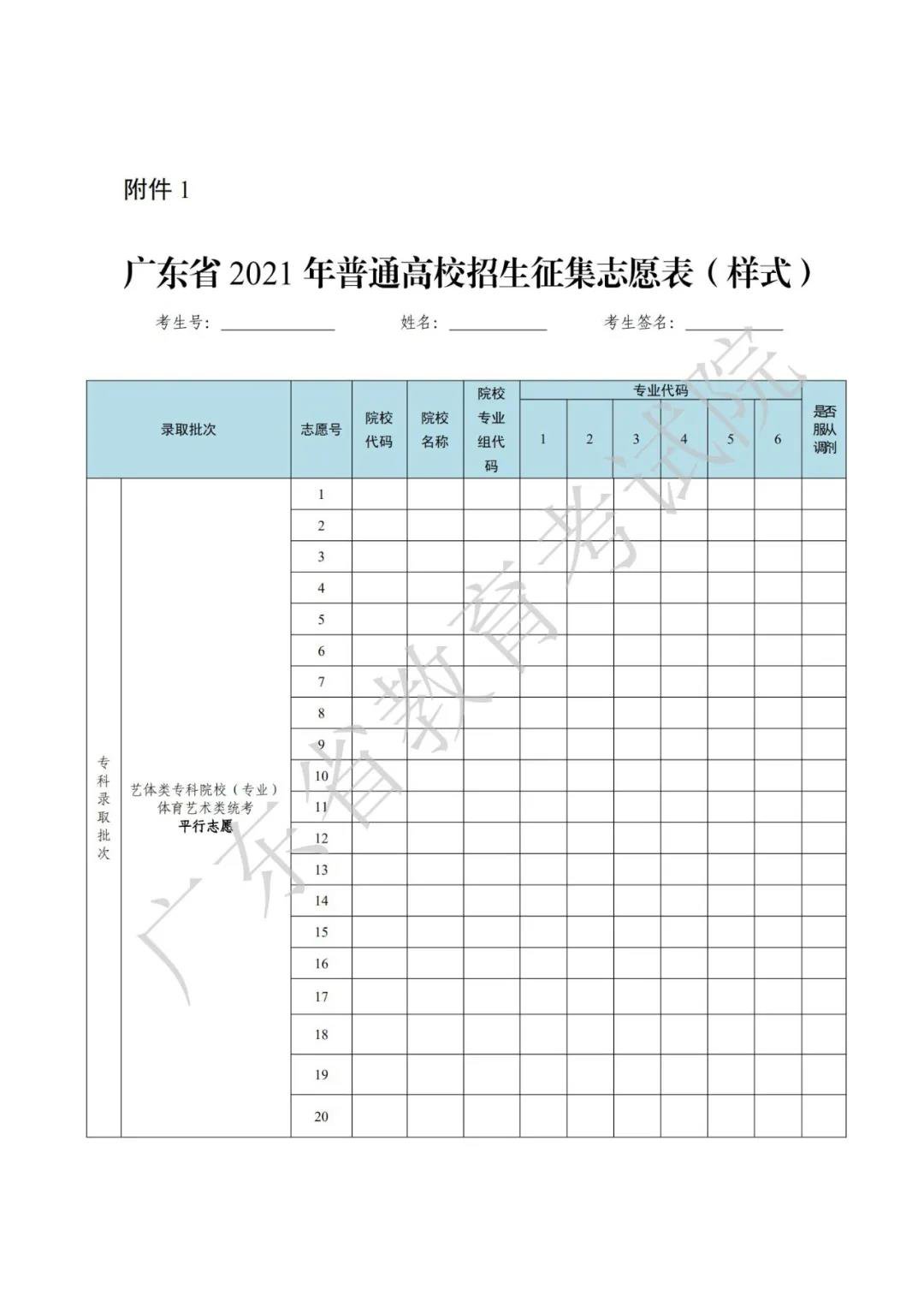 广东省2021年普通高校征集志愿表 广东省2021年普通高校征集志愿表怎么填