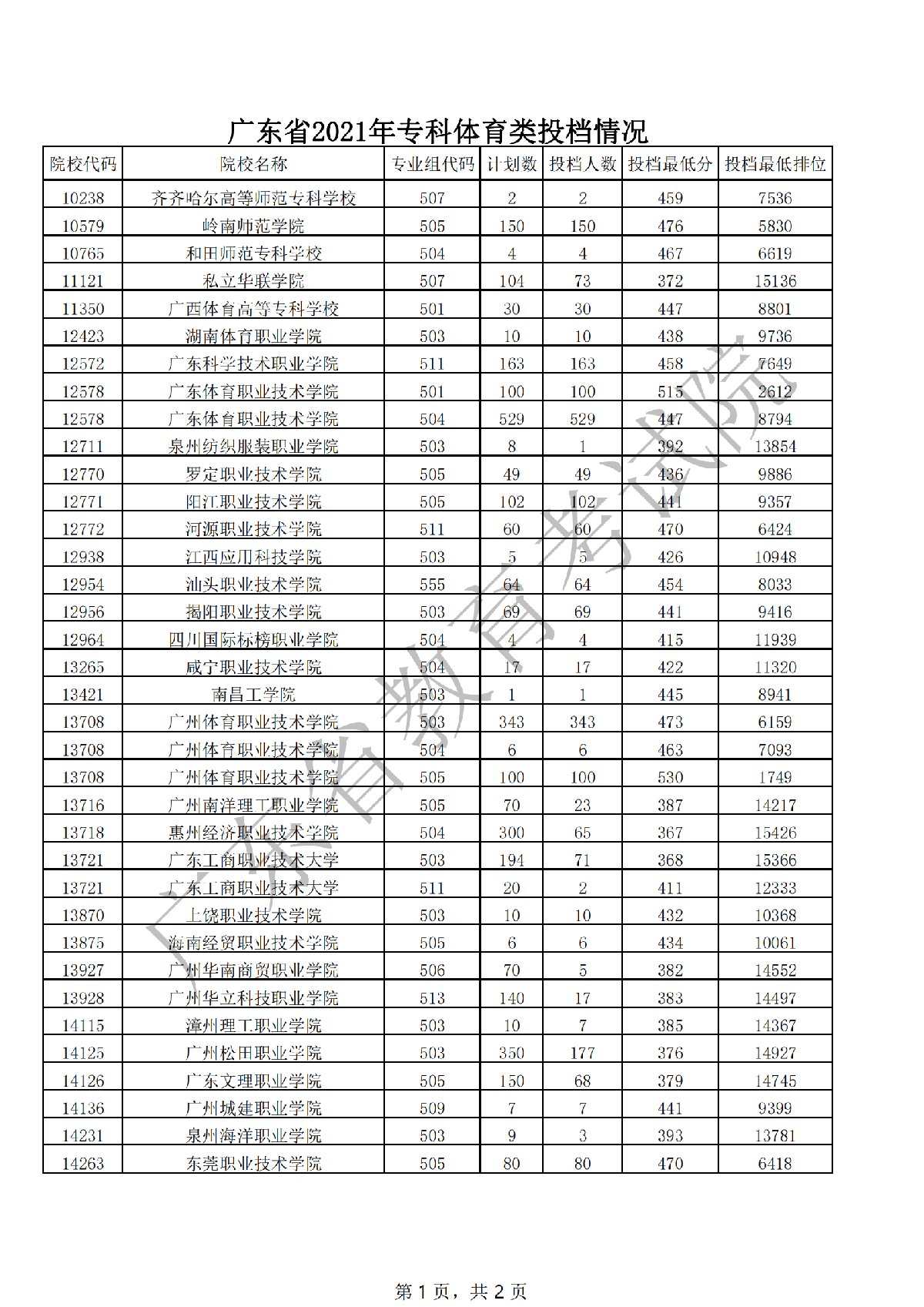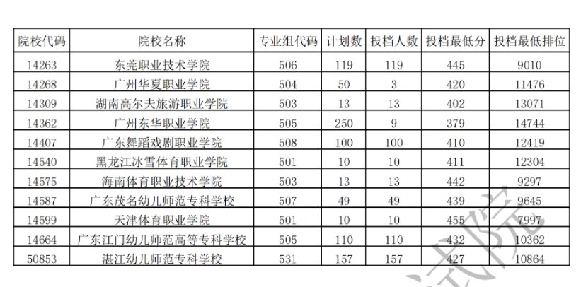 2021年广东专科体育类统考投档情况(2021年广东专科体育类统考投档情况表)