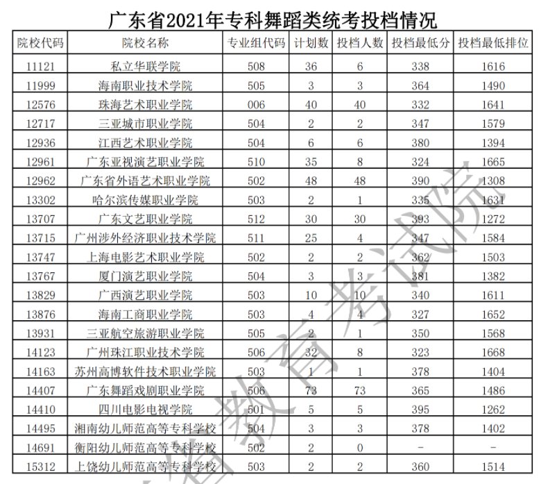 广东2021专科舞蹈类统考投档情况(广东2021专科舞蹈类统考投档情况分析)