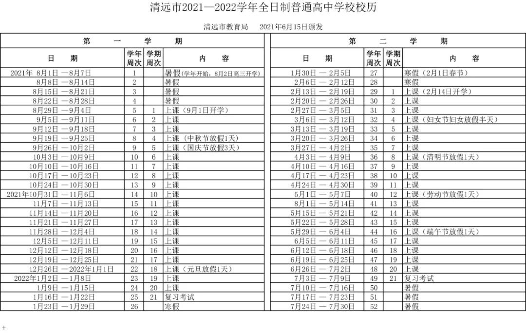2021年清远小学秋季什么时候开学 2021年清远小学放寒假时间