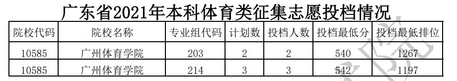 广东省2021年本科体育类征集志愿投档情况