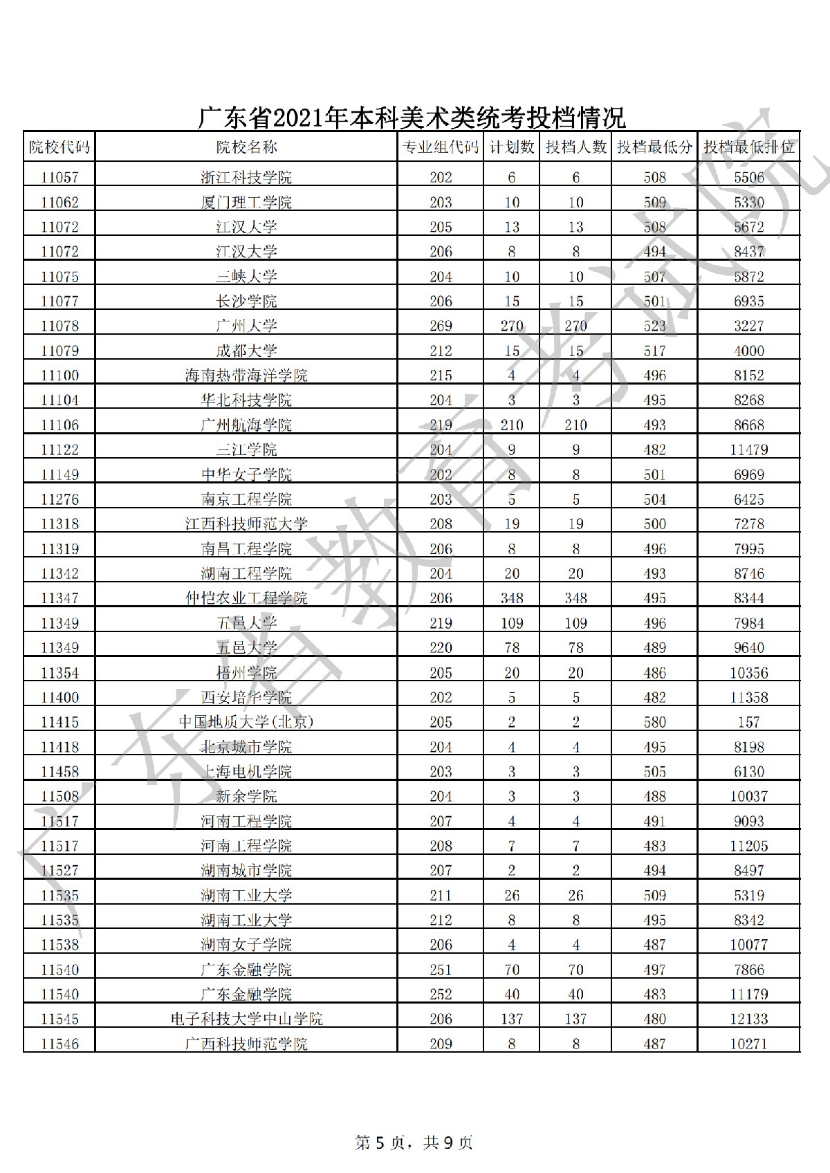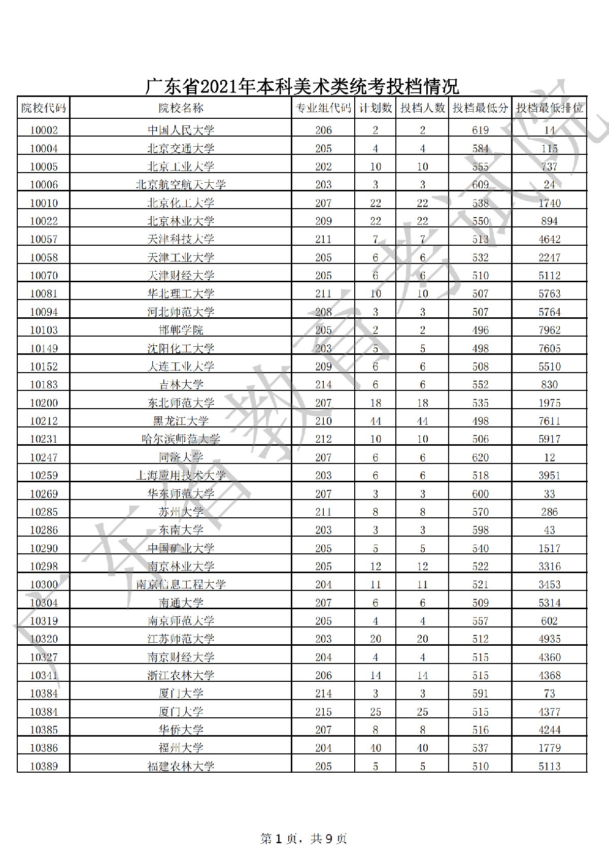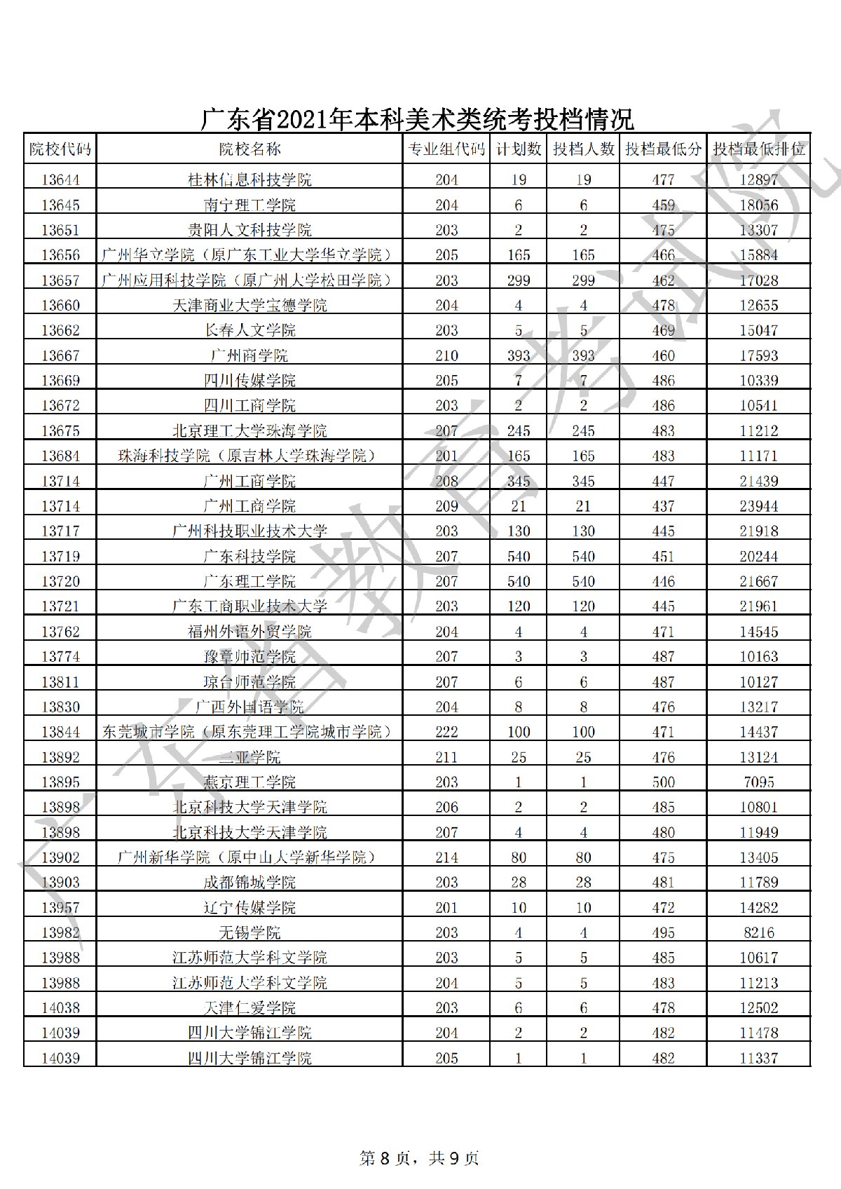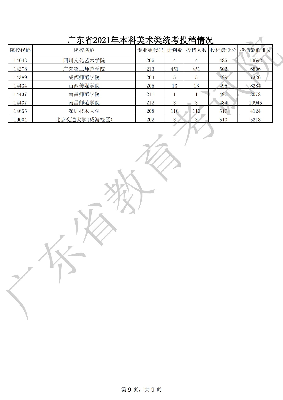 2021年广东本科美术类统考投档情况(2021年广东本科美术类统考投档情况怎么样)