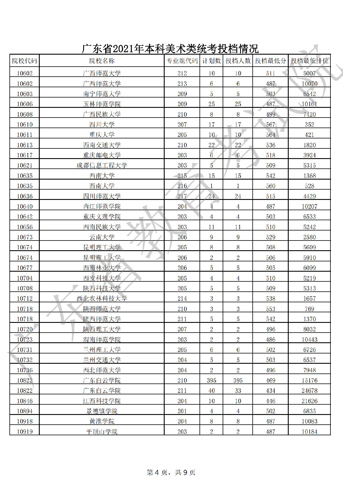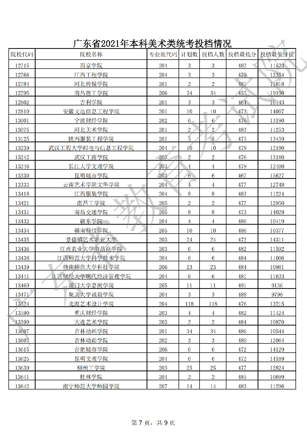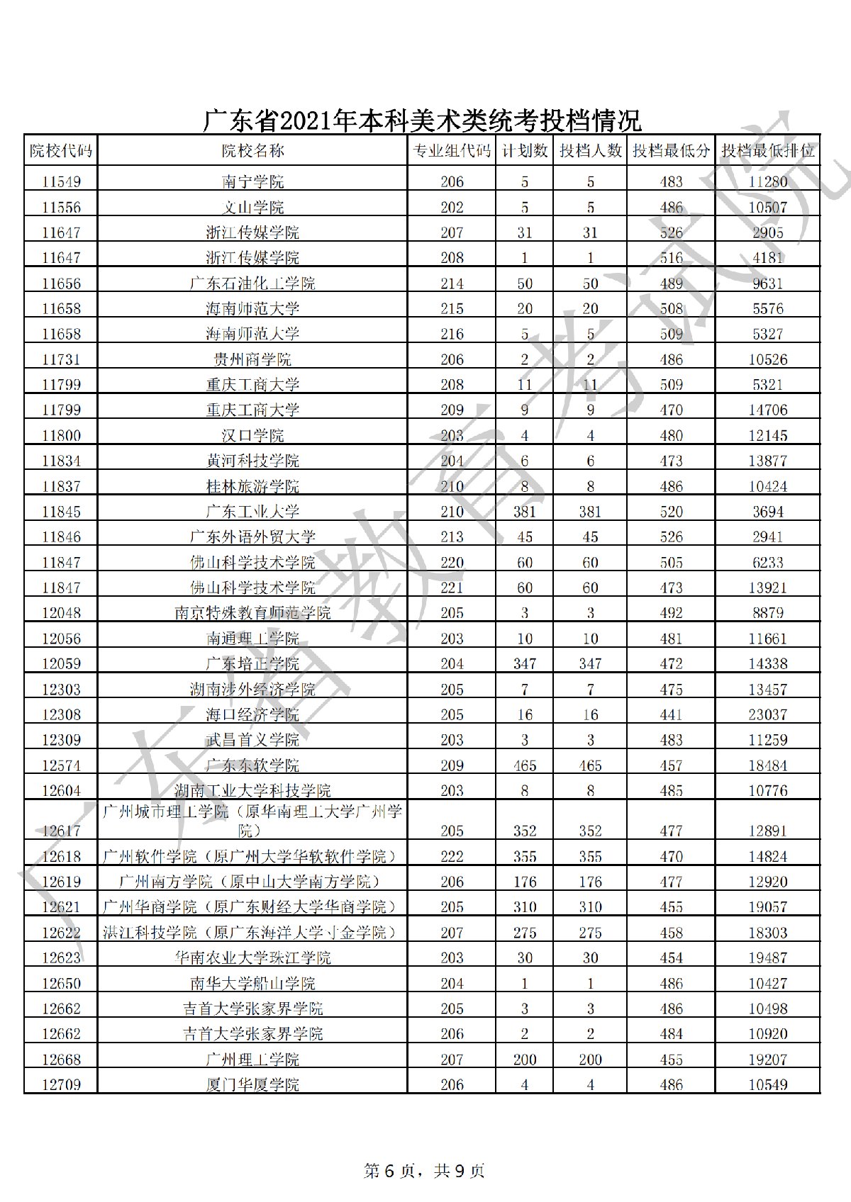 广东2021年本科美术类统考投档情况查看:(点击进入)