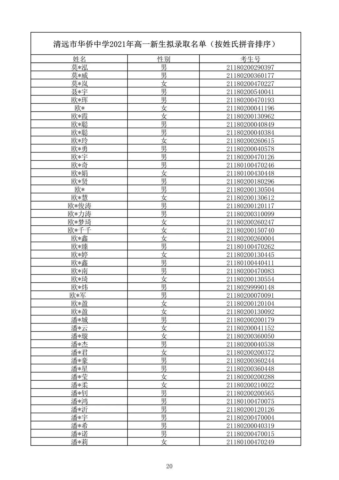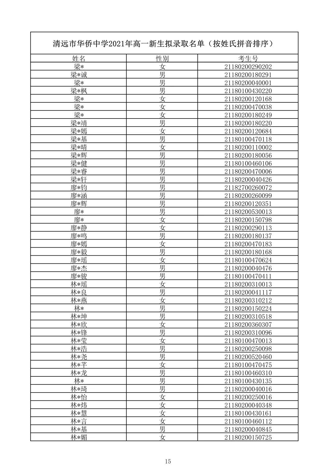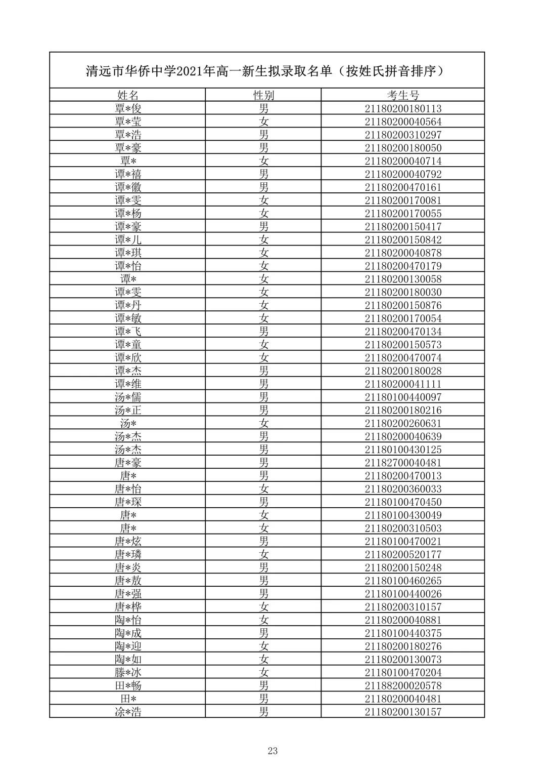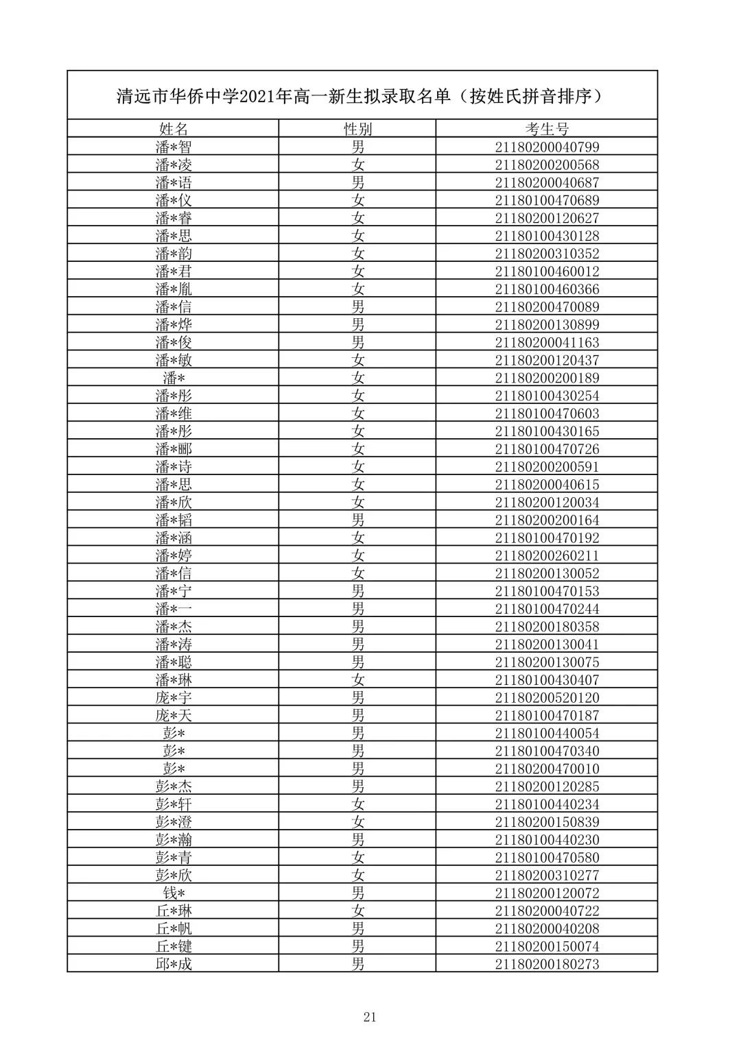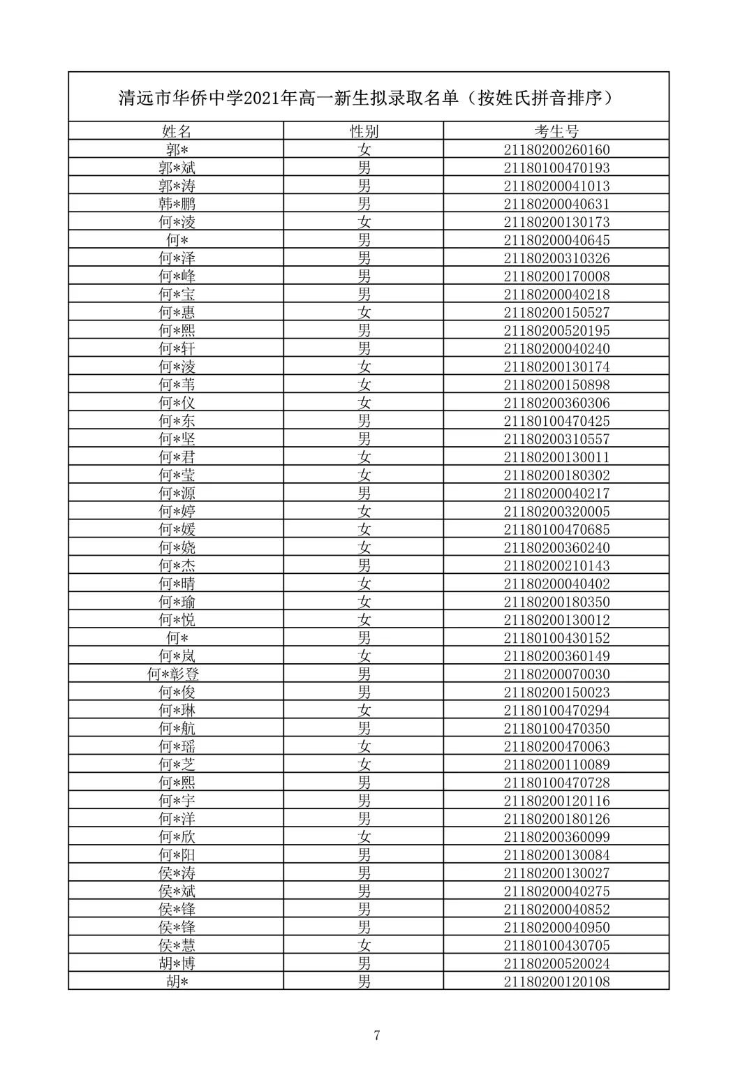 清远市华侨中学2021录取查询(清远华侨中学录取分数线2021)
