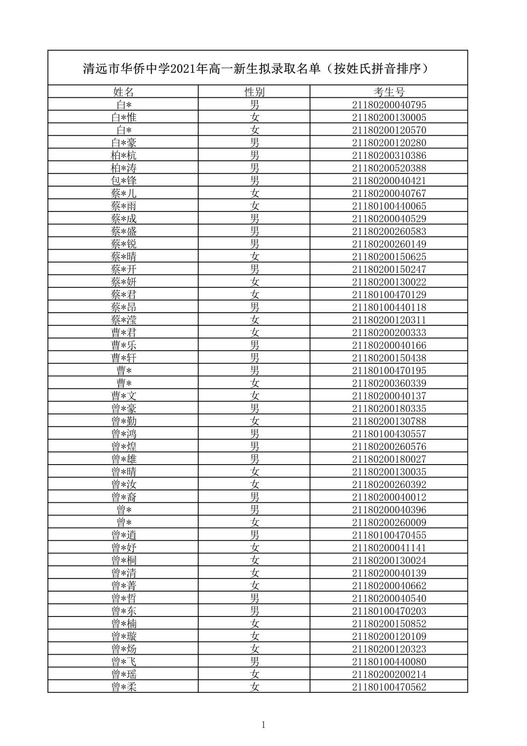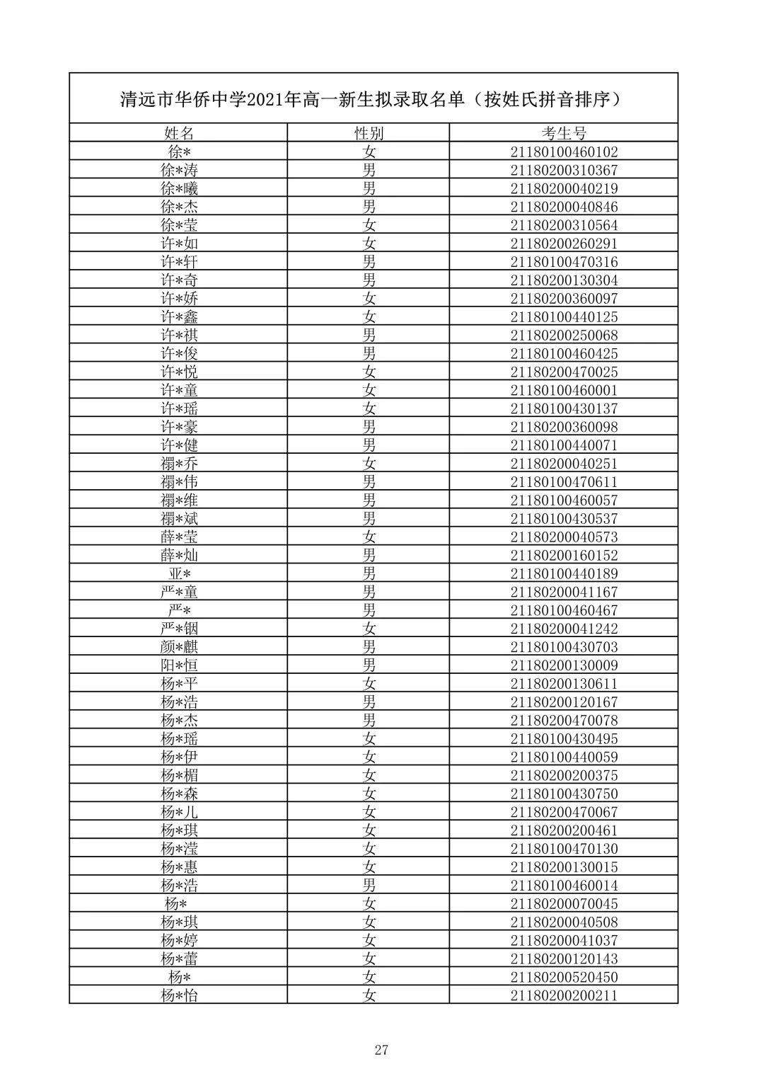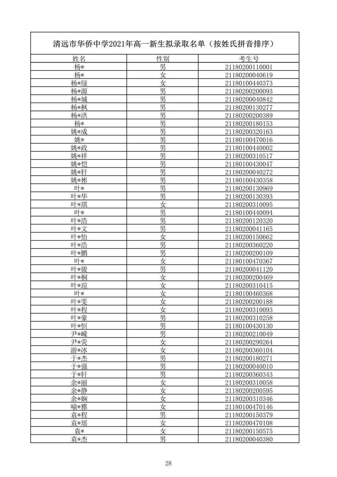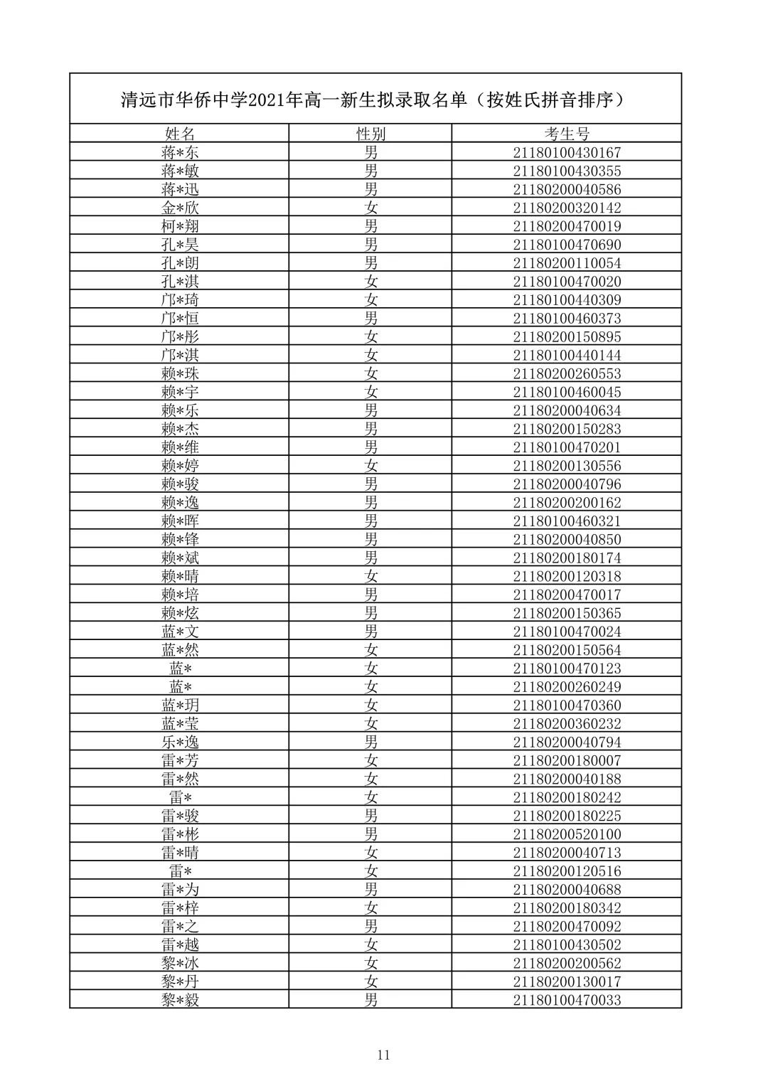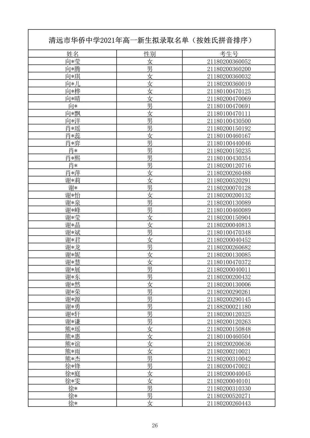 清远市华侨中学2021录取查询(清远华侨中学录取分数线2021)