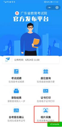 (1)在广东省教育考试院官方小程序上选择报名相片采集,选择考生端进入。