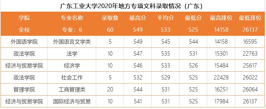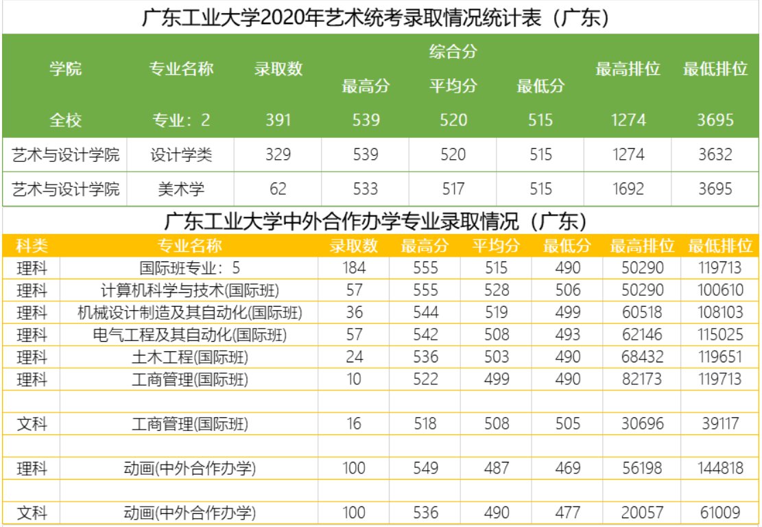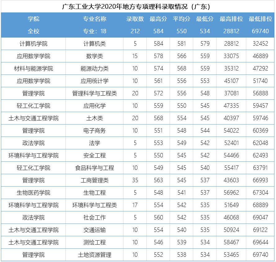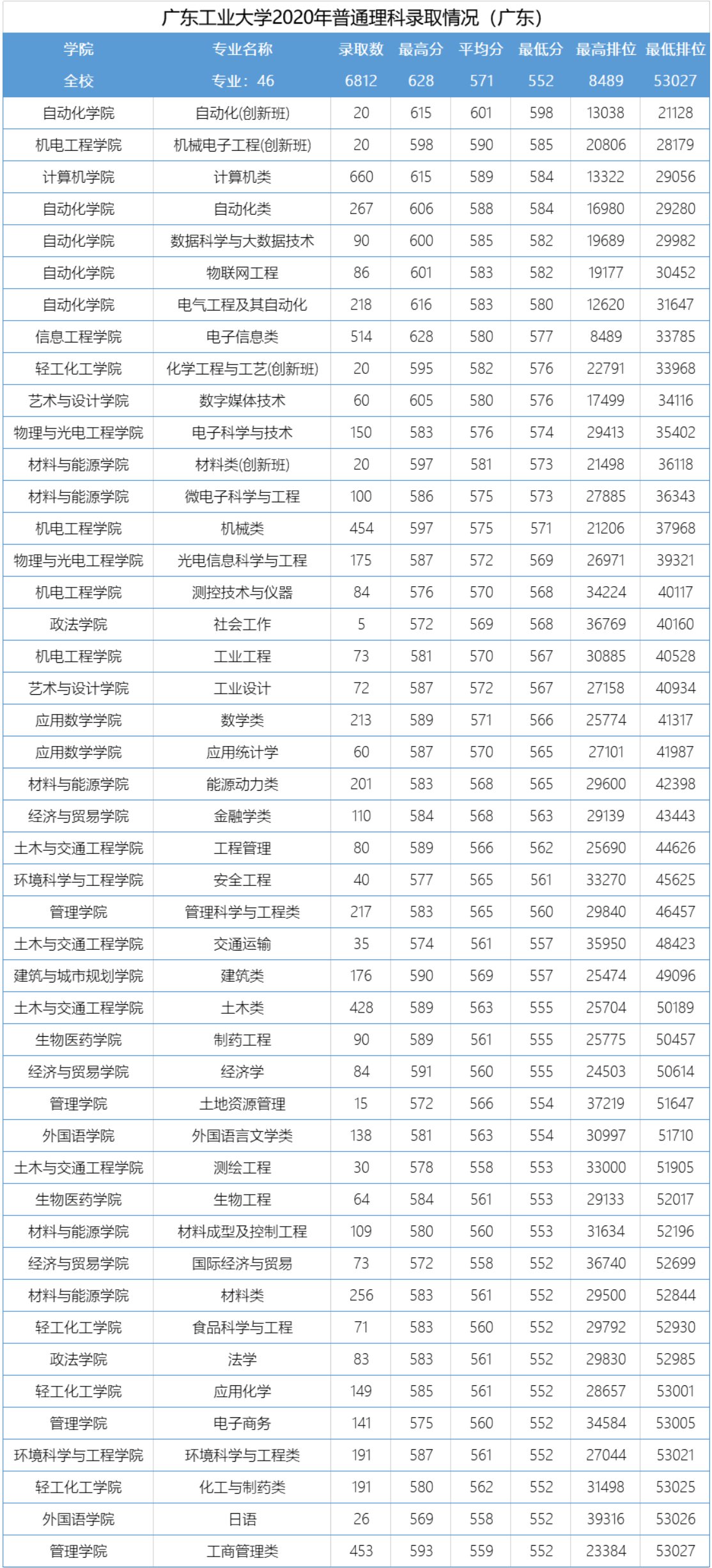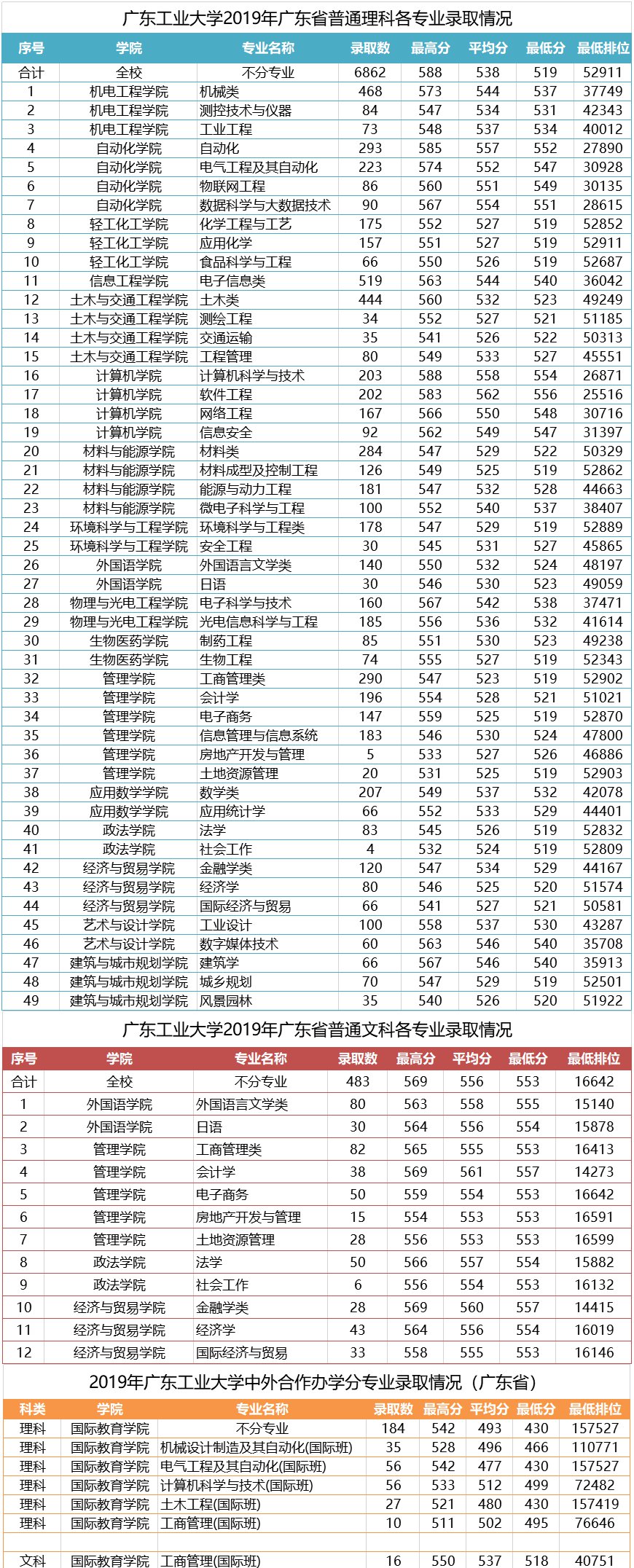 广东工业大学广东省各专业录取情况 广东工业大学招生情况