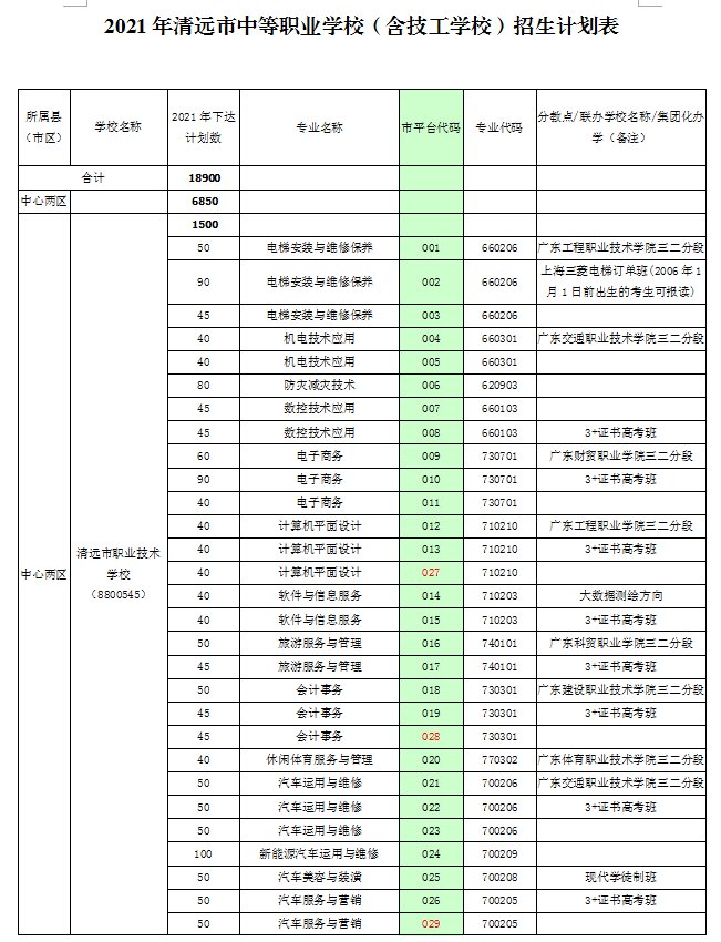 清远市2021中职学校填报代码 清远职业技术学院2021招生简章