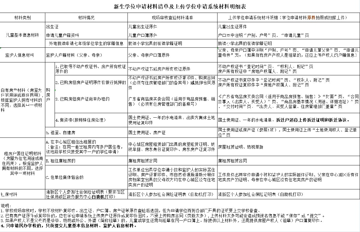 1.符合申请初中七年级学位条件的在外地(非清新区中心城区小学)就读小学六年级的学生,还须提供现就读小学出具的在读学籍证明。