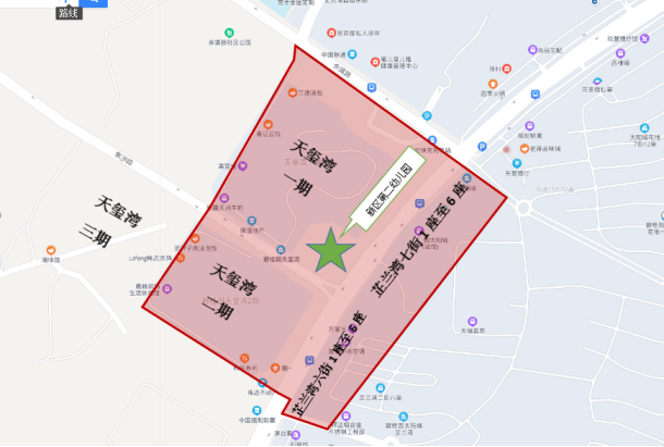 天玺湾一期→天玺湾二期→芷兰湾七街1座至6座→芷兰湾六街1座至6座
