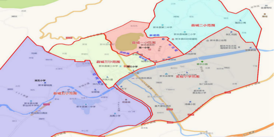 ➤新丰县县城学校招生片区划分: