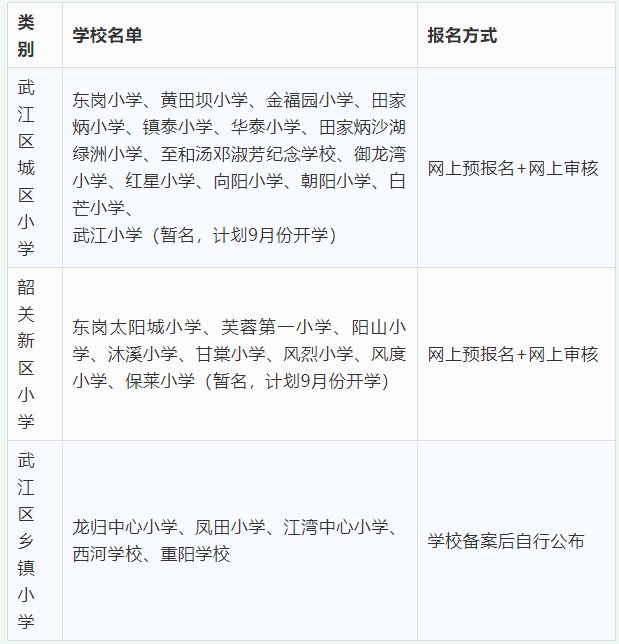 ➤武江区城区小学报名方式及时间