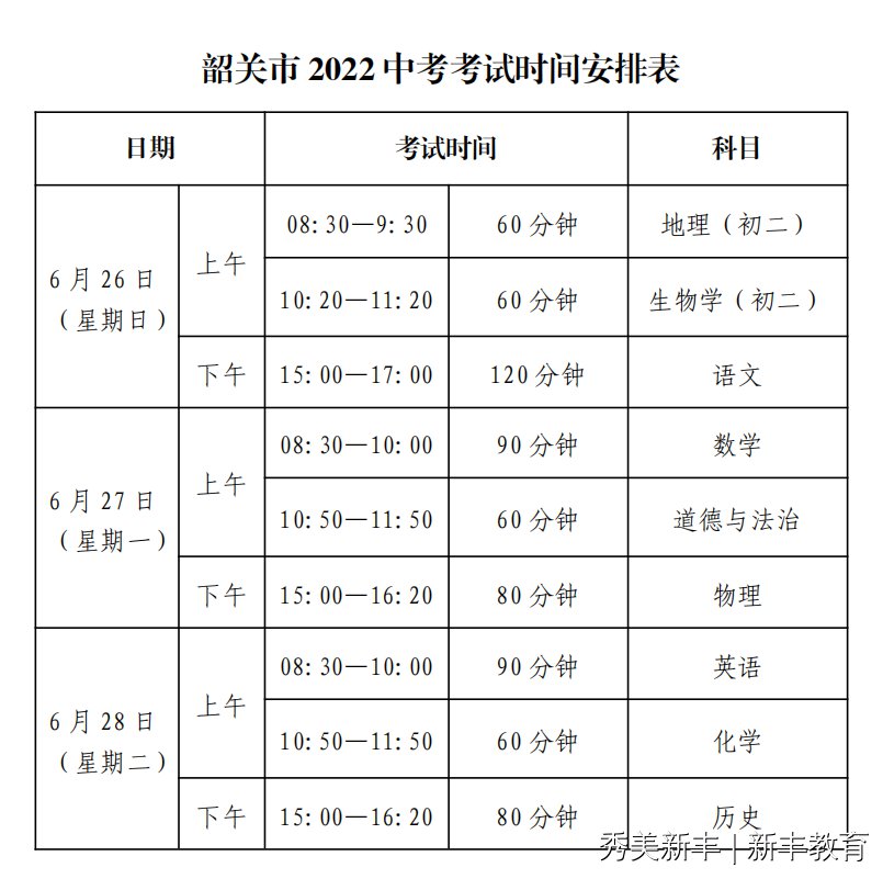 4.韶关市2022中考考试时间安排表(使用省命题考试)。