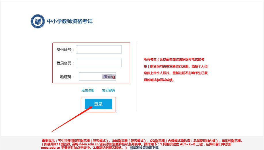 (如使用IE11浏览器, 请将 neea.edu.cn 域名添加到兼容性站点列表中。操作如下:1.同时按键盘 ALT+X+B 三键,在弹出窗口中添加 neea.edu.cn 至兼容性站点列表中。2.重新访问报名网站。)