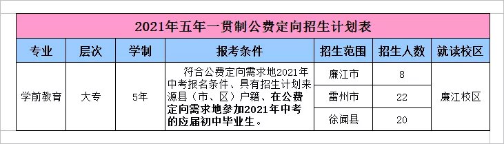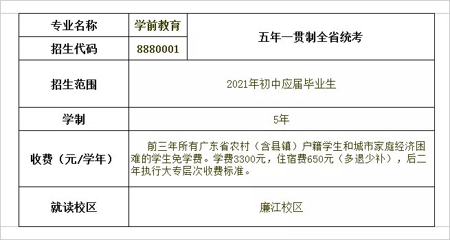 湛江幼儿师范专科学校2021年面向初中起点招生简章
