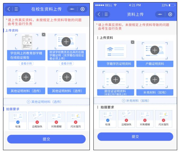 考生网上报名完成后,须在规定时间内根据小程序报名确认-操作指引上传资料进行线上审核。