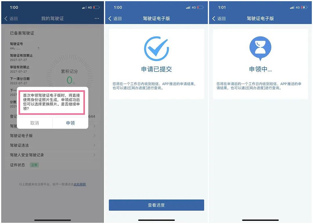 一、驾驶证状态为正常、违法未处理、事故未处理时,允许申领电子驾驶证;