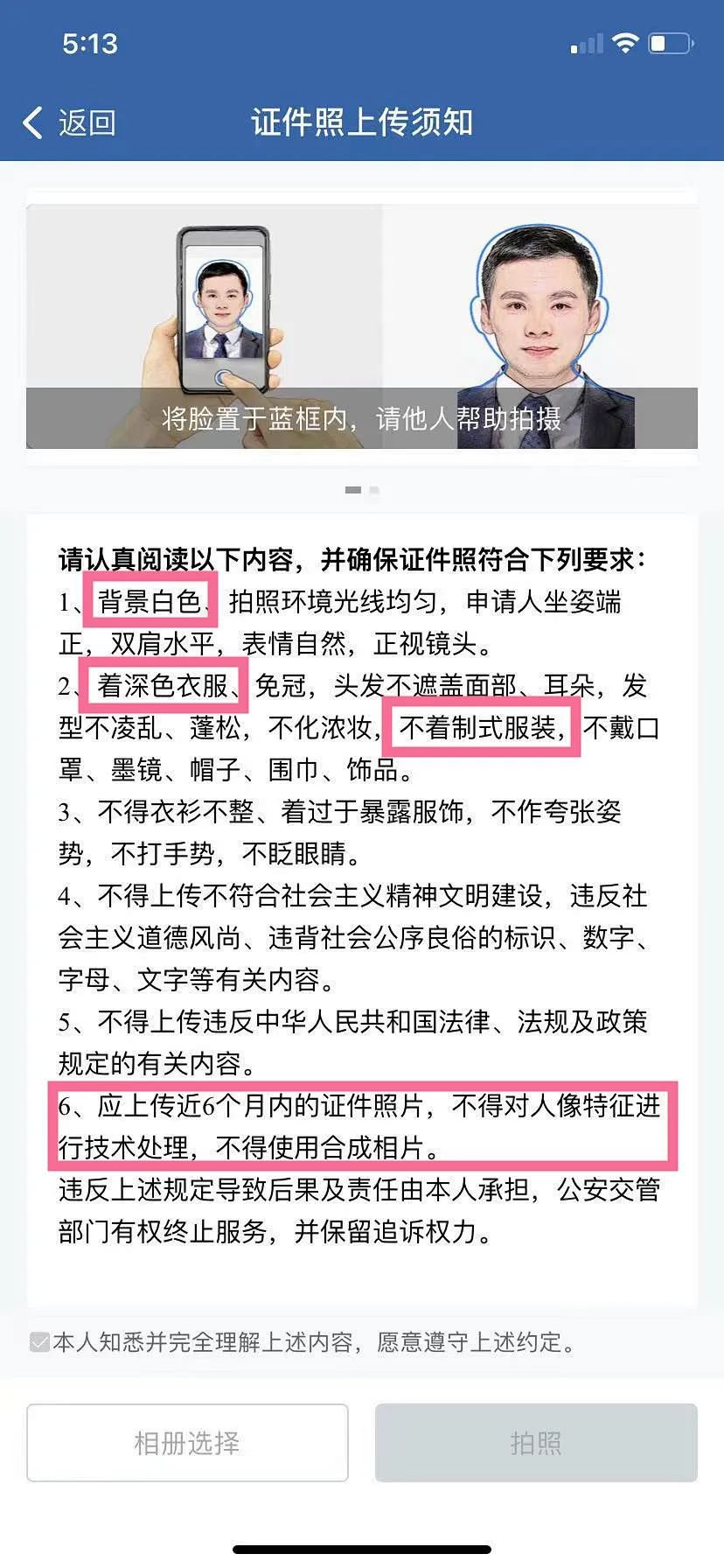 系统无法检测到有效证件照,则需要驾驶人进行手动上传。可选择【相册选择】或【拍照】2种照片上传方式。上传成功后,经后台审核通过即可生成电子驾驶证。