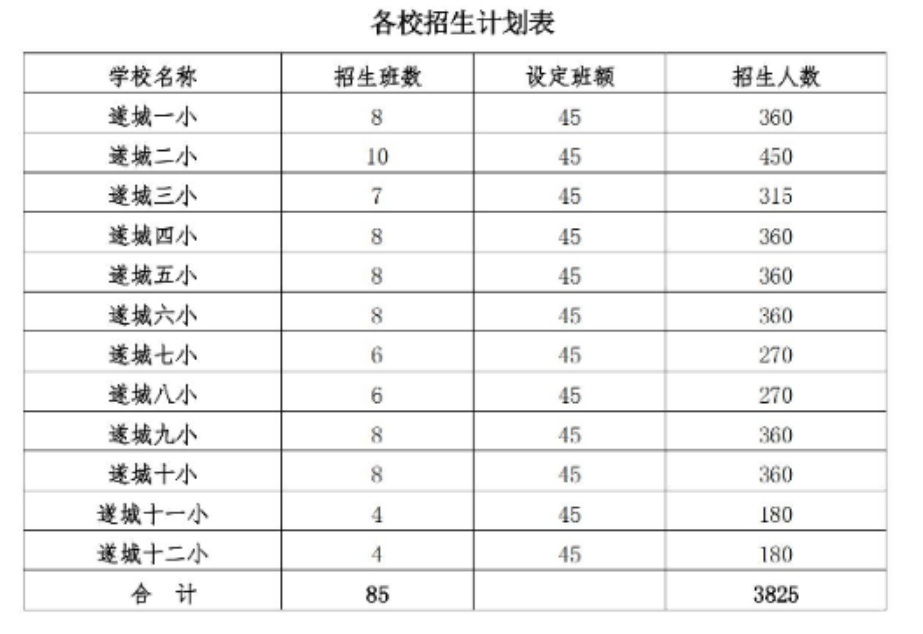 1.因中心城区学位紧欲,遂城一小、遂城二小、遂城三小、 遂城四小只接受第1类至5类招生对象报名;第6类至7类对象只限报遂城五小、遂城六小、遂城七小、遂城八小、遂城九小、遂城十小、遂城十一小、遂城十二小。