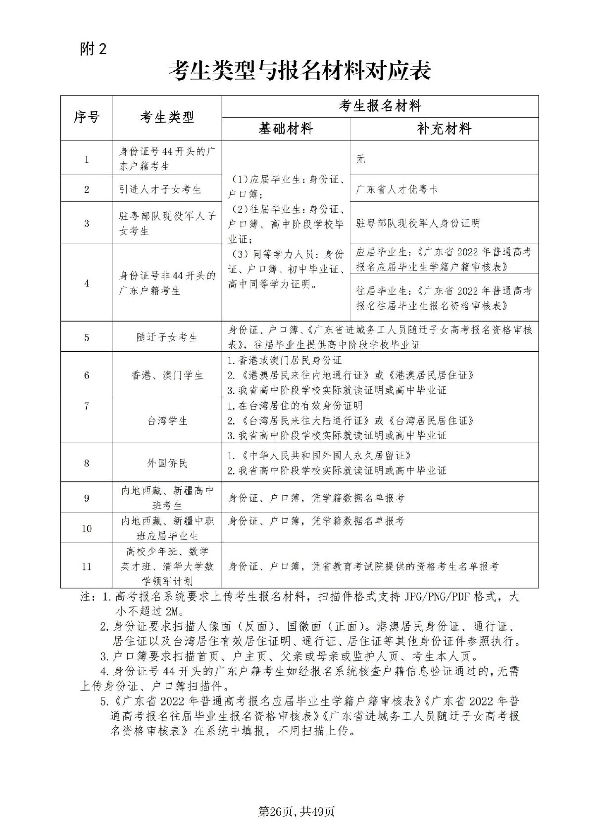 网上报名完成后,考生还须在规定时间内持二代(或三代)身份证、户口簿、学籍学历等证明材料到市县招生办公室指定的报名点办理确认报名手续。确认报名手续包括确认报名资格、校对和核准报考信息等。具体报名办法按《广东省2022年普通高校招生统一考试报名实施细则》进行。