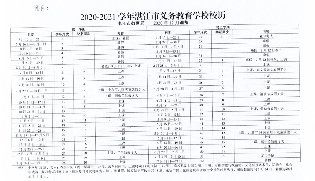 2021湛江中小学寒假放假时间安排(2021年湛江寒假中小学放假时间表)