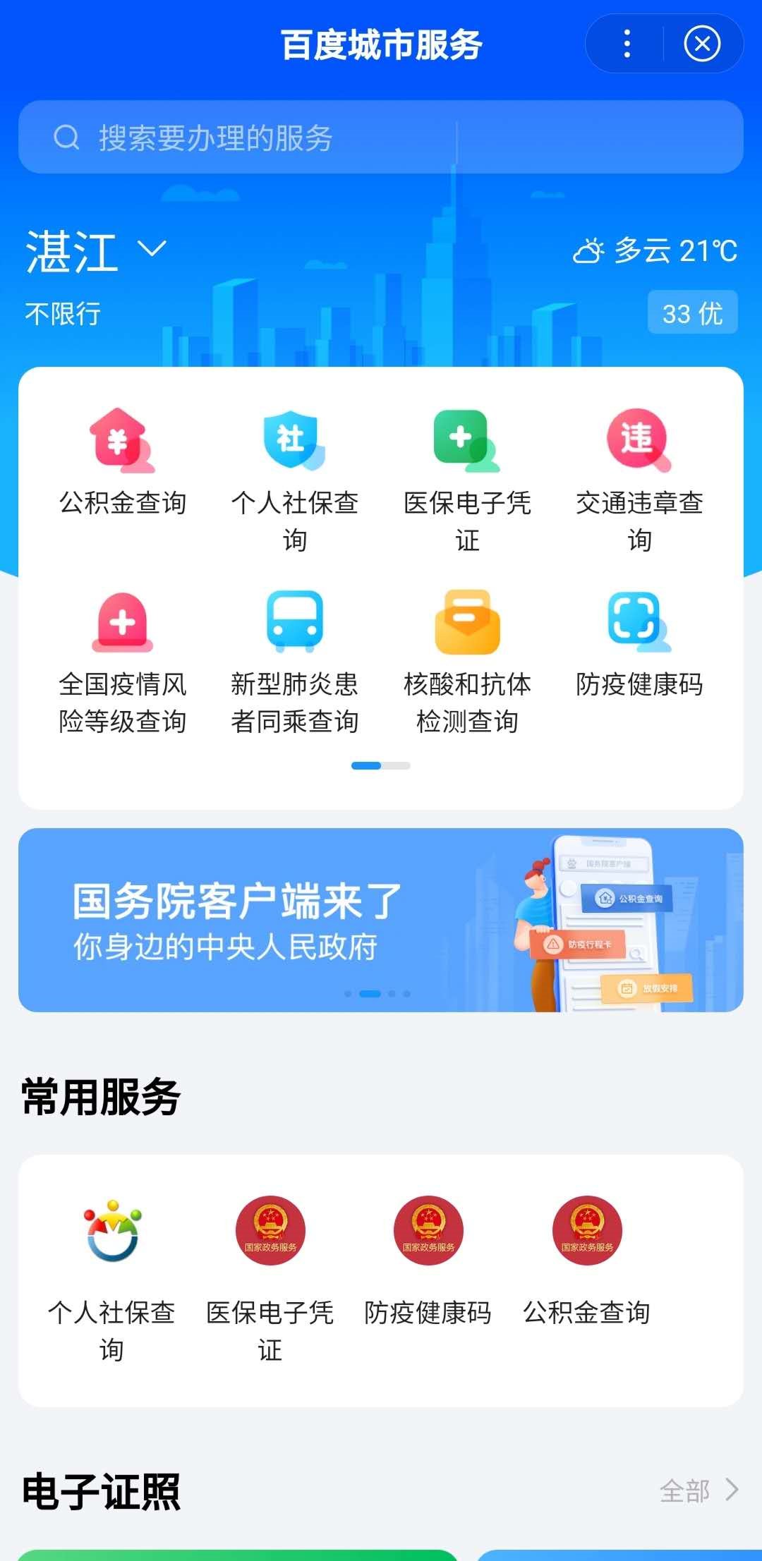 第一步:百度搜索【程序服务】,进入百度城市服务小程序,进入后定位到【湛江】