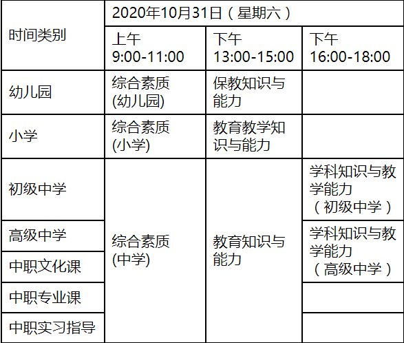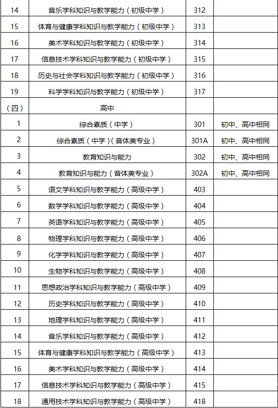 (二)2020年下半年中小学教师资格考试(笔试)科目代码列表