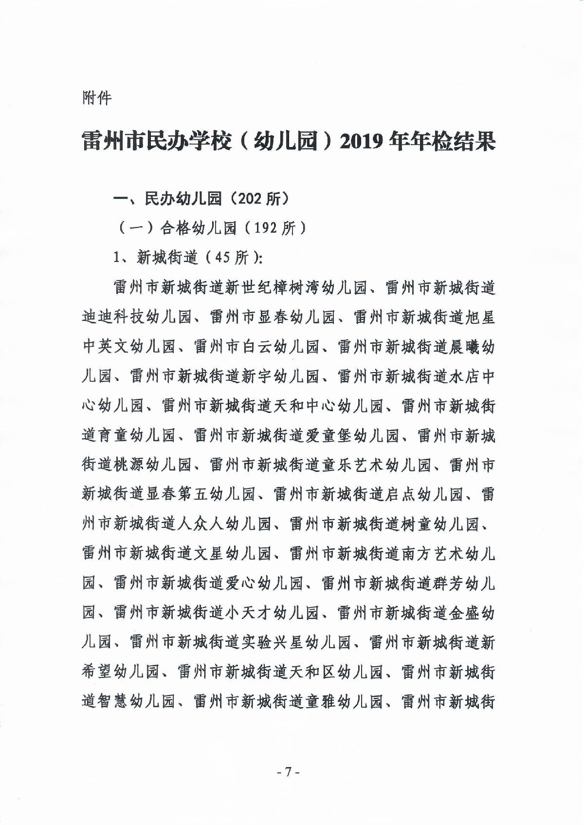 雷州民办幼儿园2019年检结果
