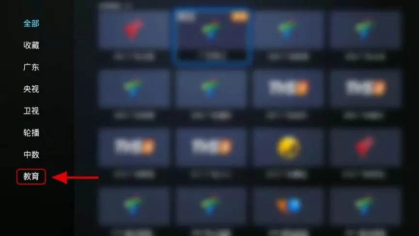 操作步骤:用遥控器打开天翼高清(IPTV)进入首页,右移至“直播”,向下选择全部频道-教育,点击相应的年级,即可进入观看。或可以直接输入相应年级频道号,直接进入。如下图: